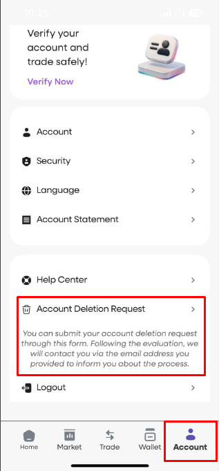 4. After accurately filling in the relevant fields in detail, your account deletion request will be evaluated following review by our support team.