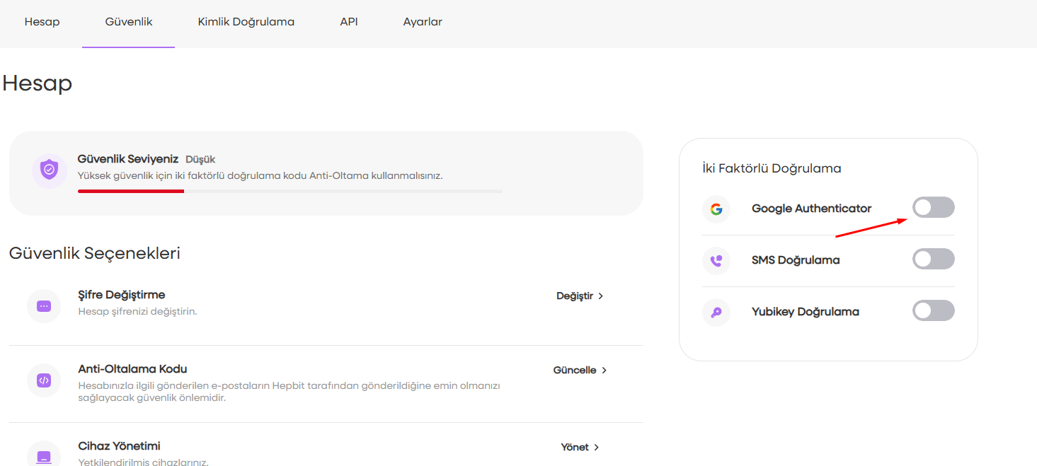 - Google Doğrulamayı aktif etmek için görseldeki butonu aktif edin.