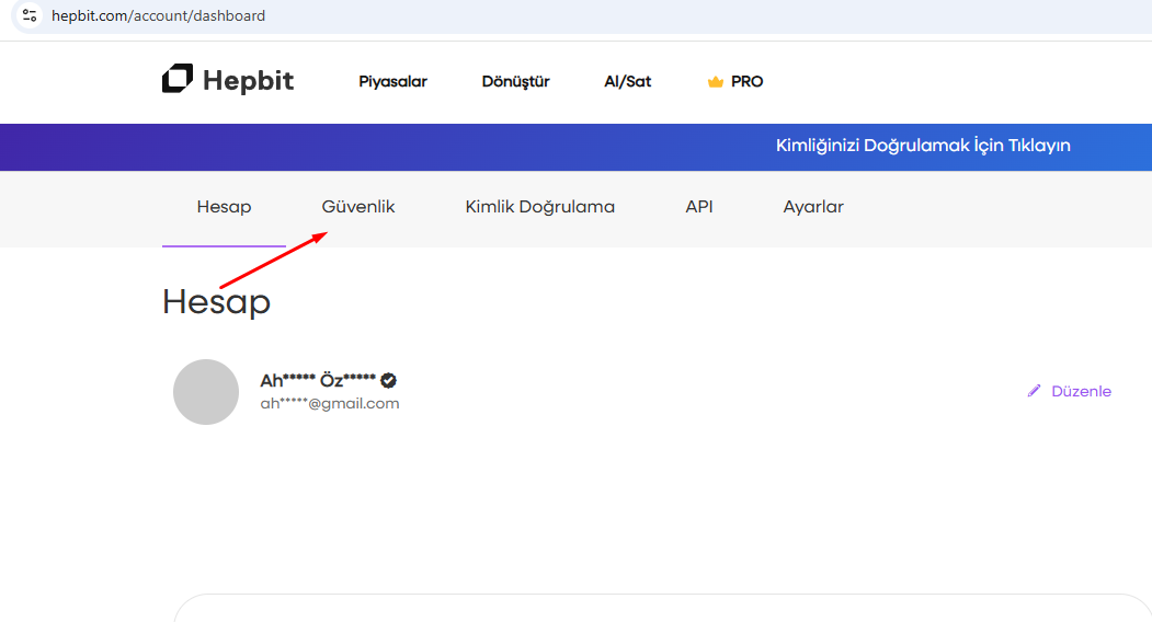 - Hesap sayfasında bulunan üst menülerde Güvenlik menüsüne geçiş yapın.